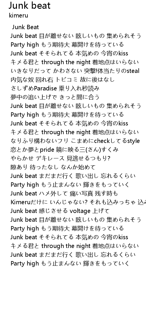 | Junk beat まだまだ行く 歌い出し 忘れるくらい | |