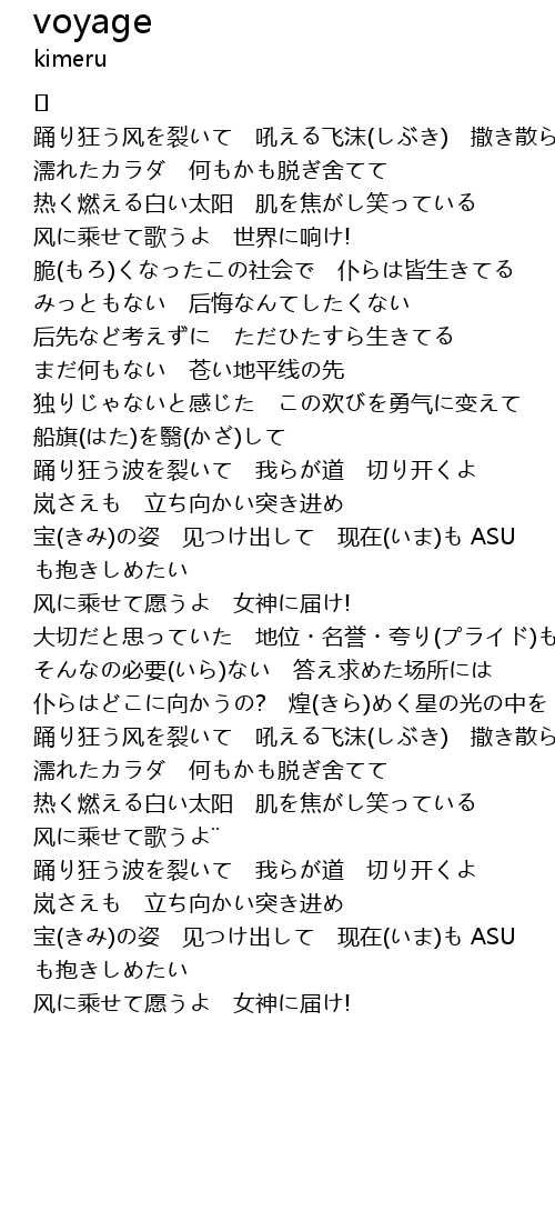 | 踊り狂う波を裂いて 我らが道 切り开くよ | |