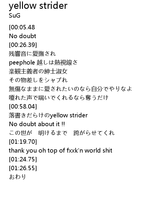 | [01:09.39] | 落書きだらけのyellow strider |