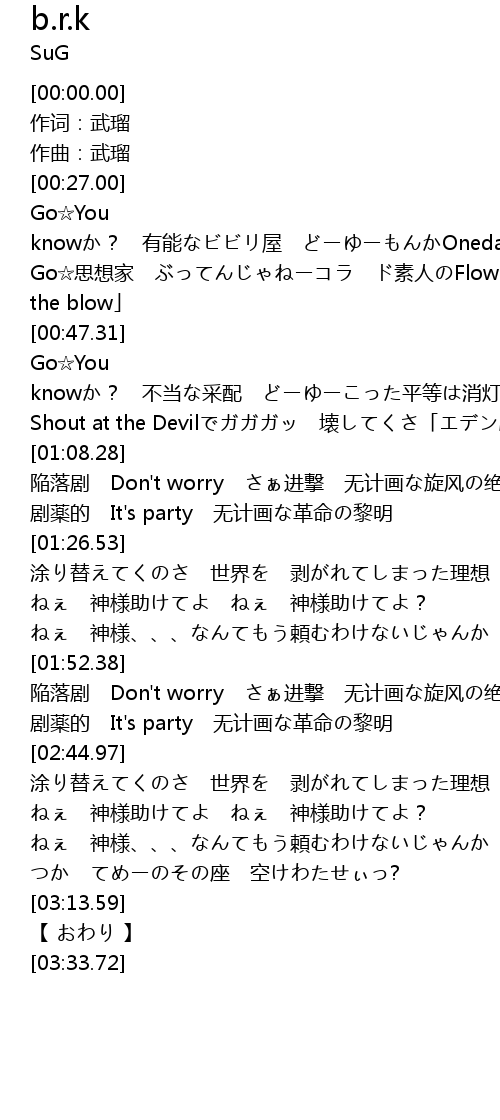 | [00:58.00] | Go☆You knowか? 不当な采配 どーゆーこった平等は消灯 |