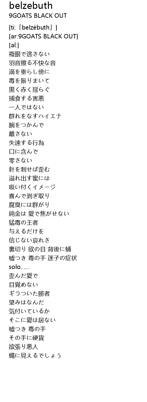 | [02:34.91] | 裏切り 欲の目 背後に蛹 |