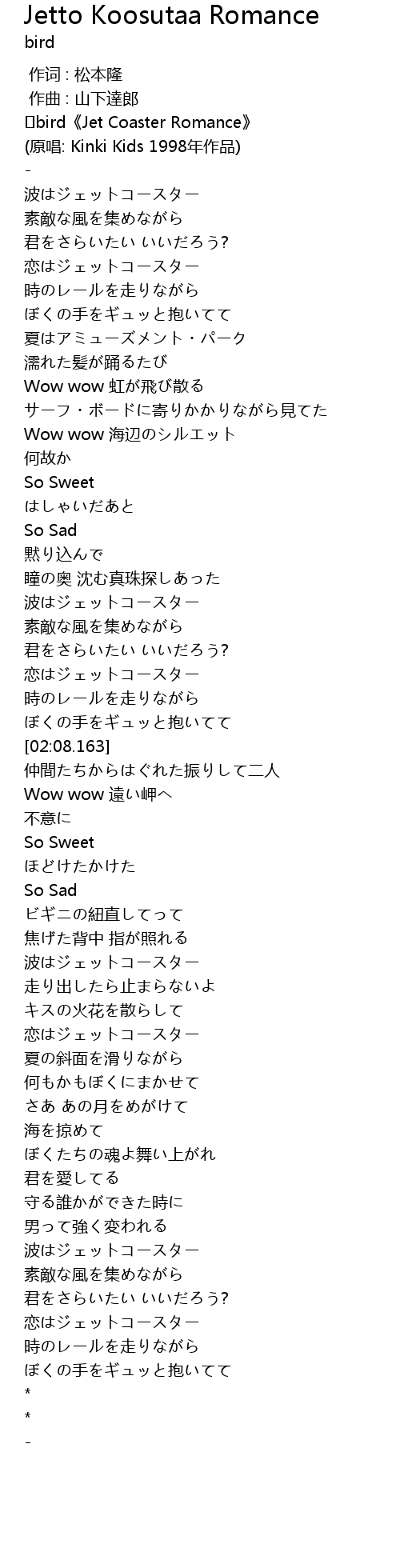 | [00:00.300] | bird Jet Coaster Romance |