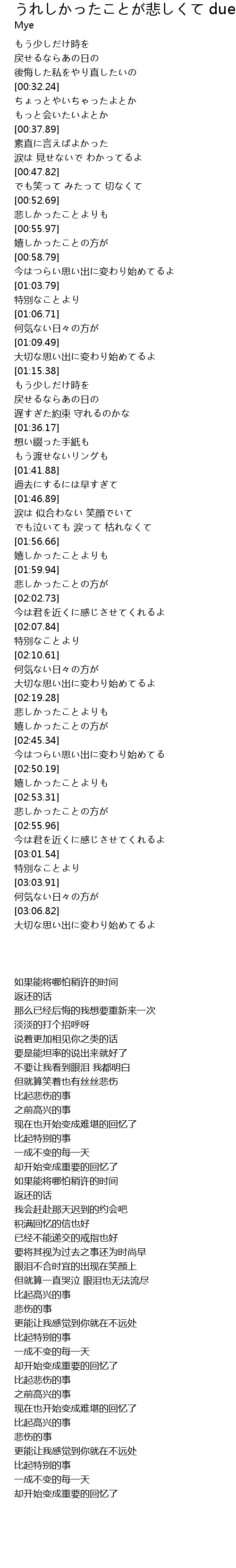 | [03:07.46] | 大切な思い出に変わり始めてるよ |