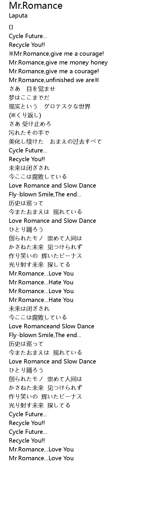 | Mr.Romance,unfinished we are※ | |