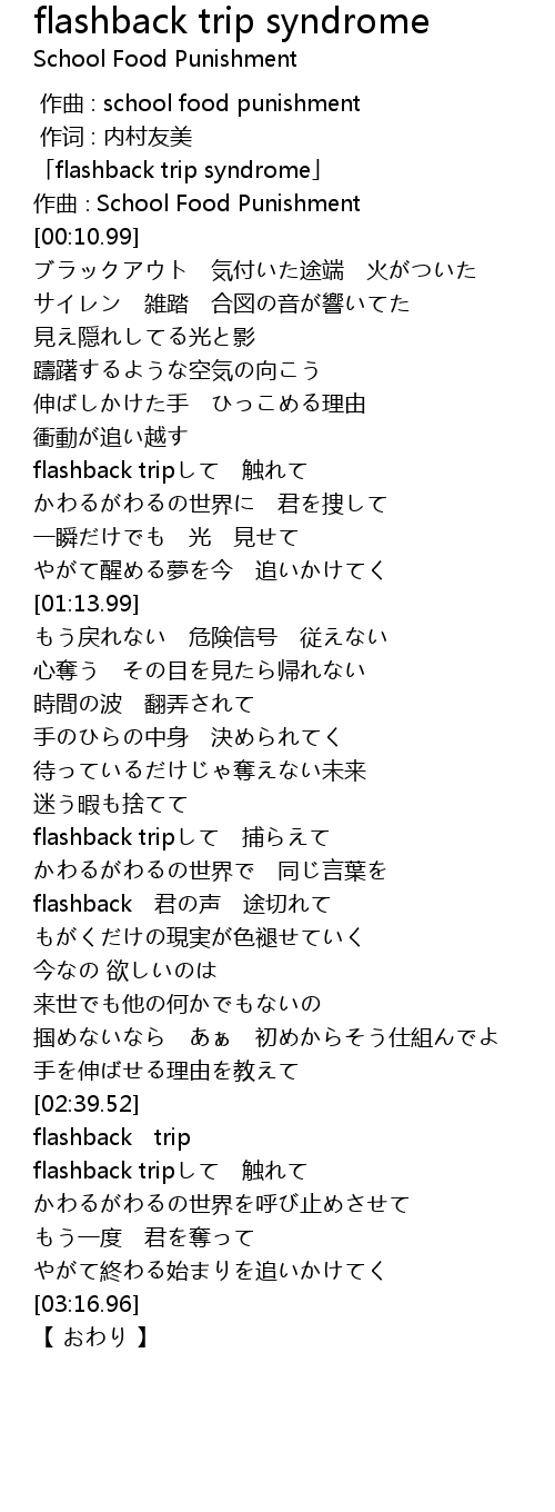 | [00:06.99] | zuò qǔ School Food Punishment |