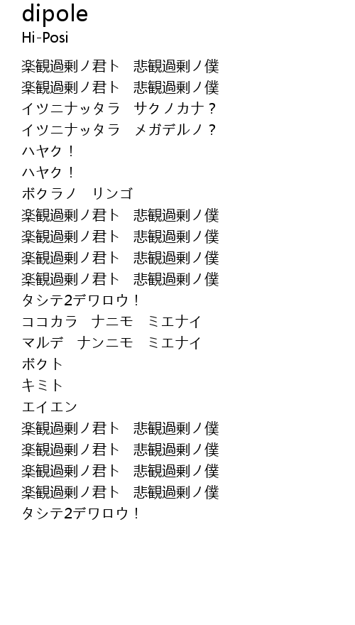 | [01:46.200] | 楽観過剰ノ君ト 悲観過剰ノ僕 |
