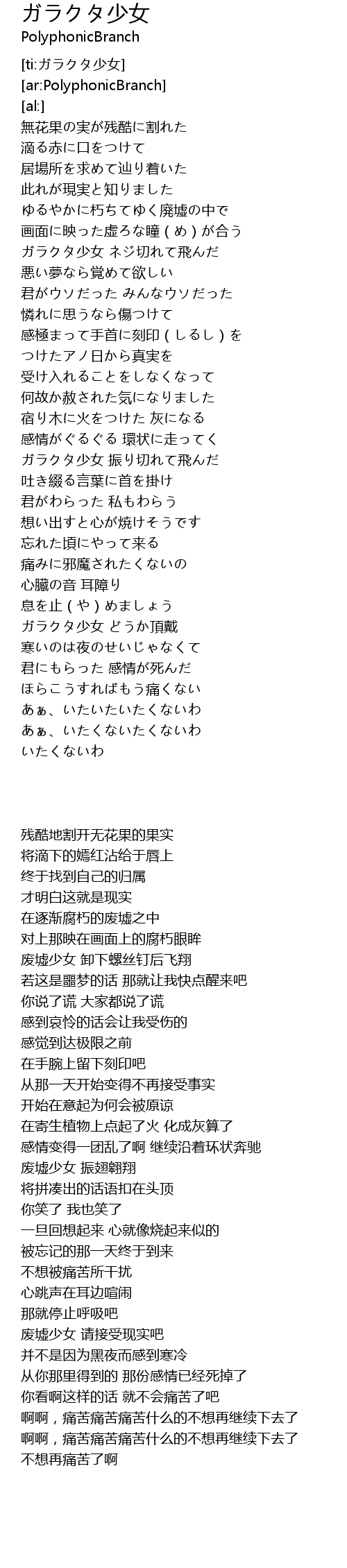 | [00:40.69] | ガラクタ少女 ネジ切れて飛んだ |