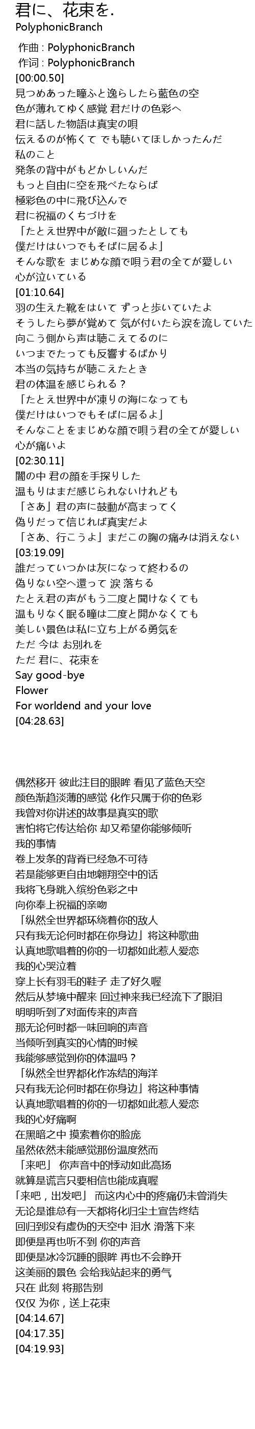 | [04:05.69] | ただ 君に、花束を |