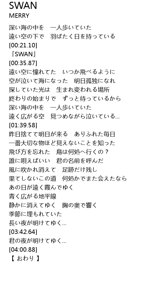 | [00:24.87] | 「SWAN」 |