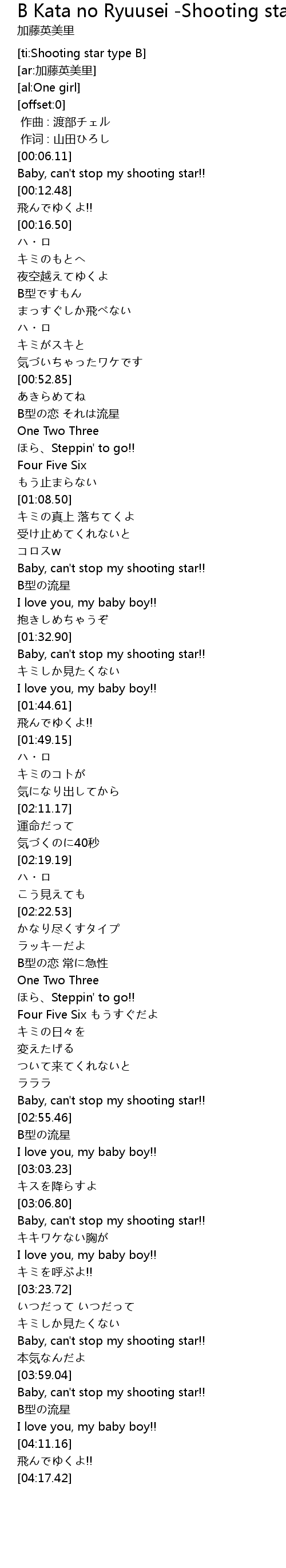 | [01:33.73] | Baby, can' t stop my shooting star!! |