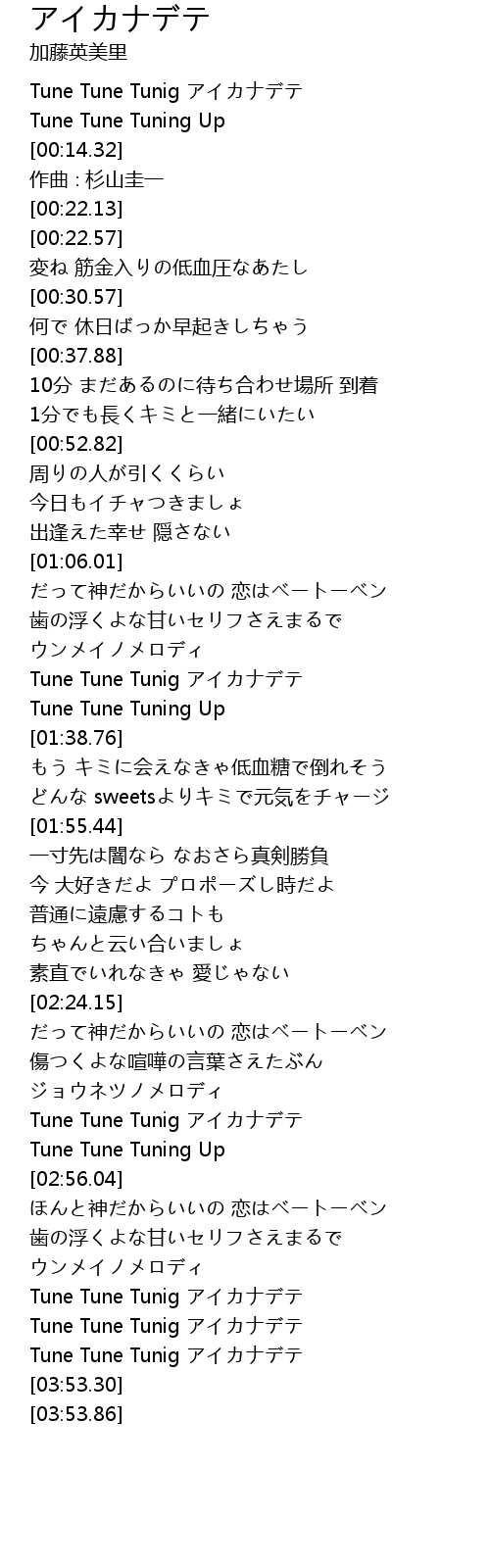 | [03:38.17] | Tune Tune Tunig アイカナデテ |