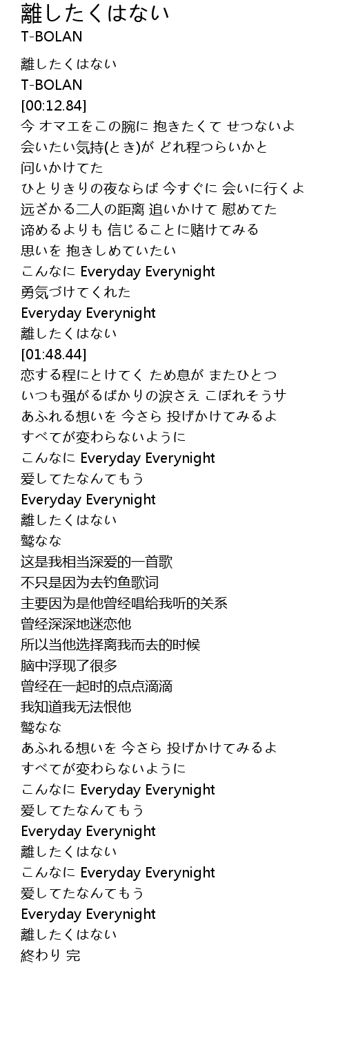 | [02:14.94] | あふれる想いを 今さら 投げかけてみるよ |