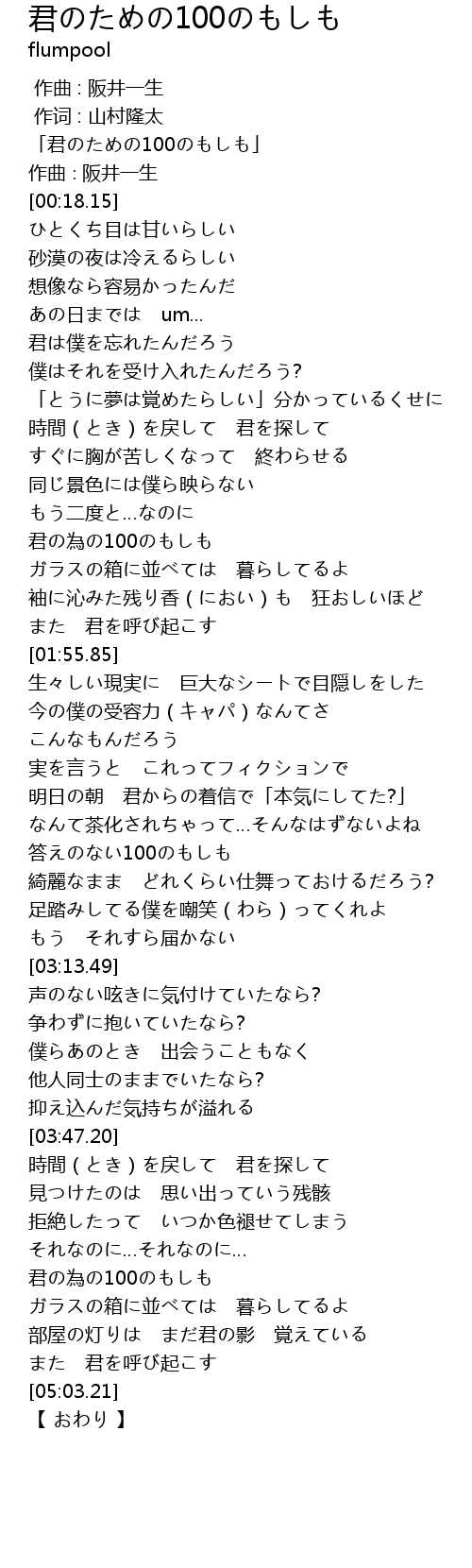 | [00:01.15] | 「君のための100のもしも」 |