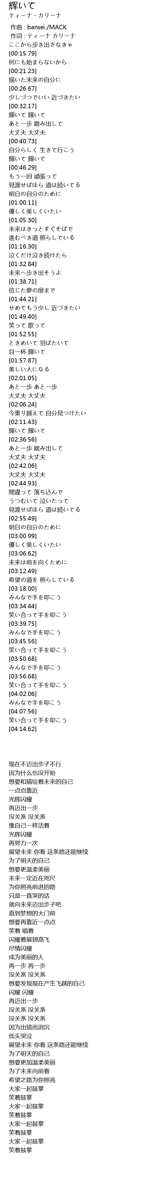 | [00:01.00] | 作词 : ティーナ カリーナ |