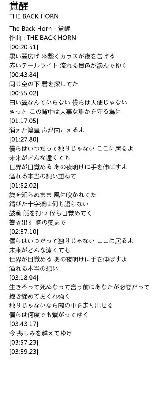 | [00:01.51] | The Back Horn - 覚醒 |