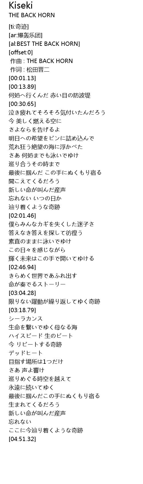 | [00:00.00] | 作曲 : THE BACK HORN |