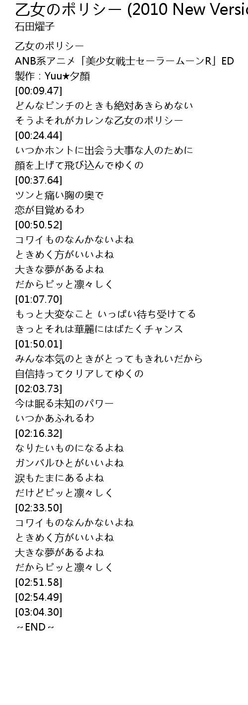 | [00:-1.00] | 乙女のポリシー |
