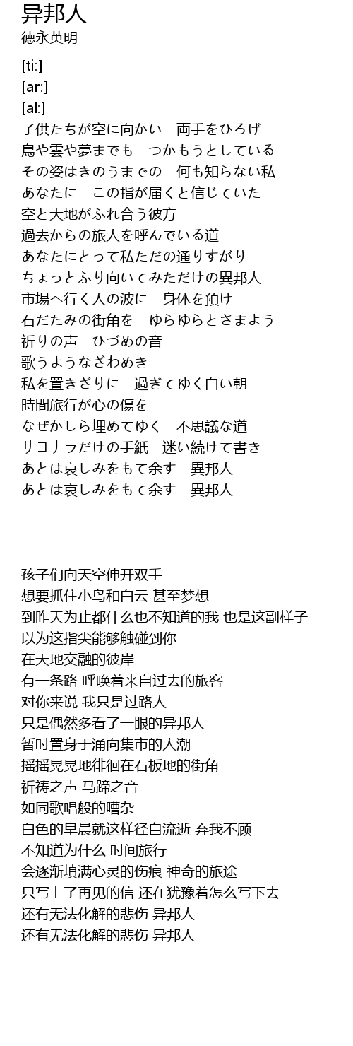| [03:57.03] | あとは哀しみをもて余す 異邦人 |