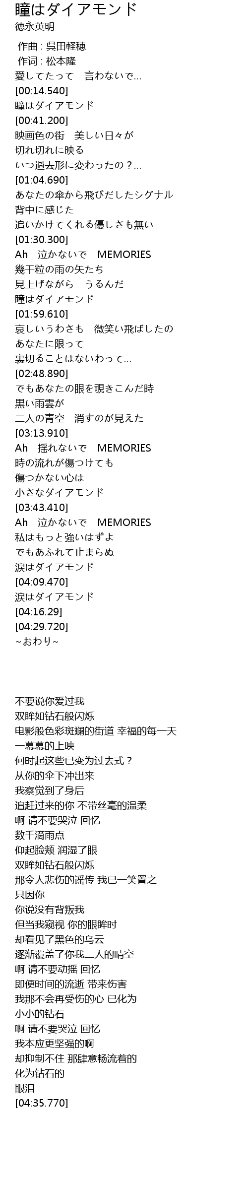 | [00:21.680] | 瞳はダイアモンド |