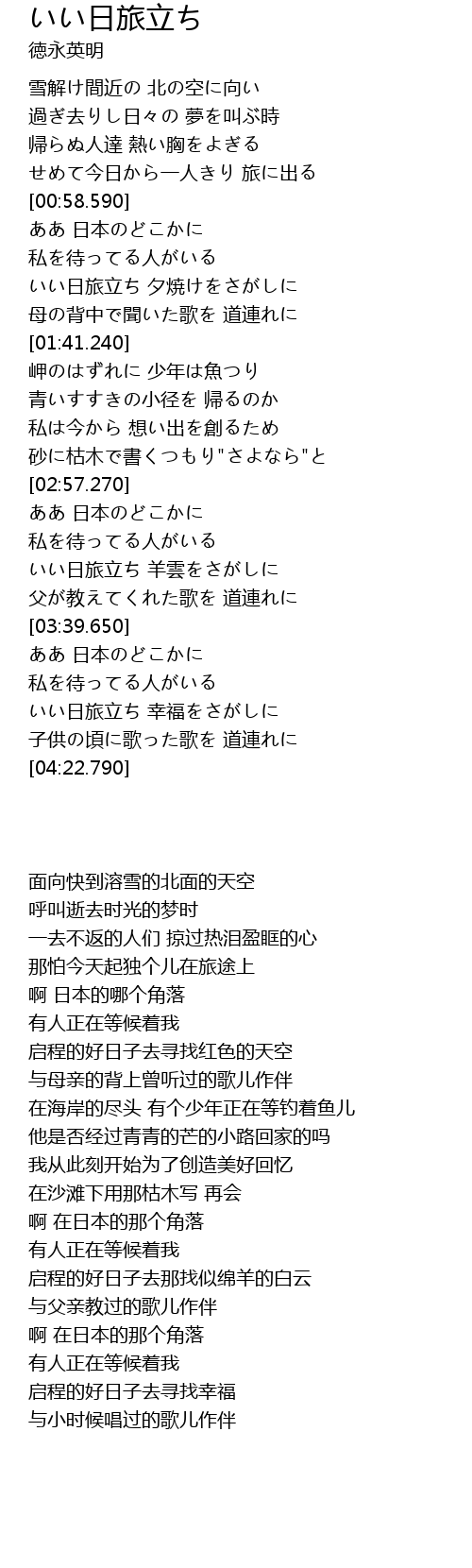 | [04:03.30] | いい日旅立ち 幸福をさがしに |