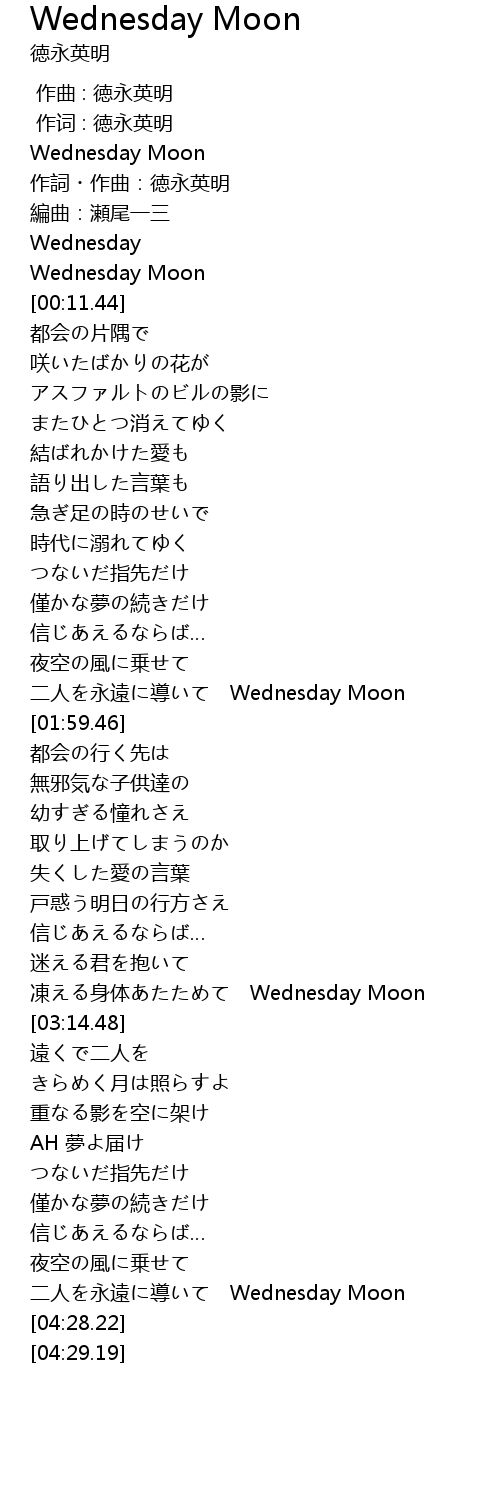 | [01:50.96] | 二人を永遠に導いて Wednesday Moon |