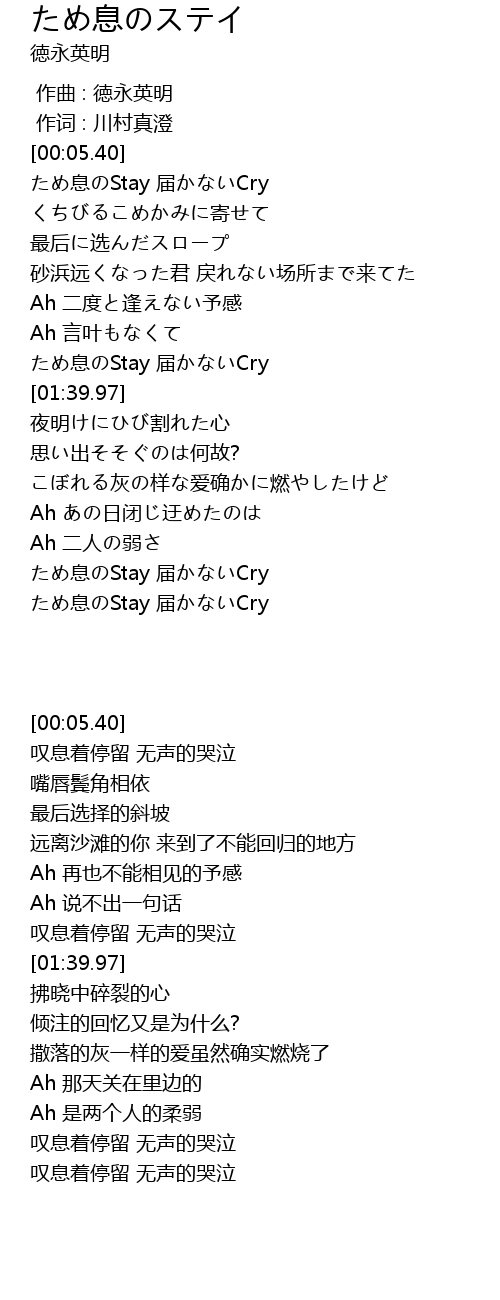 | [00:15.37] | ため息のStay 届かないCry |