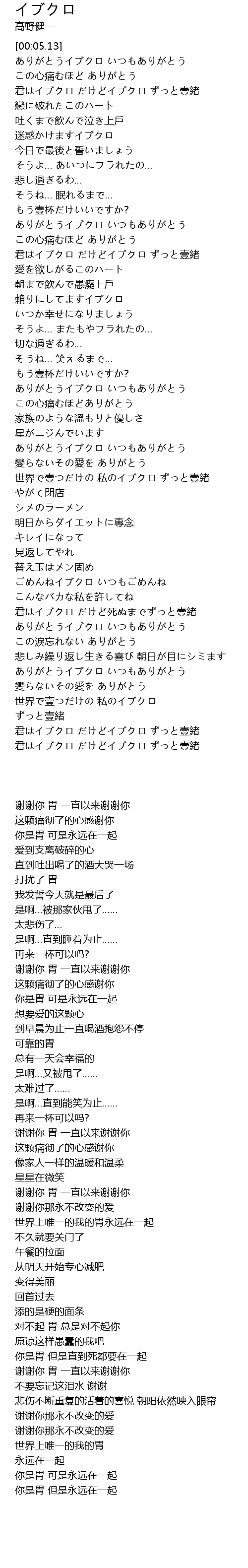 | [03:22.66] | 君はイブクロ だけどイブクロ ずっと壹緒 |