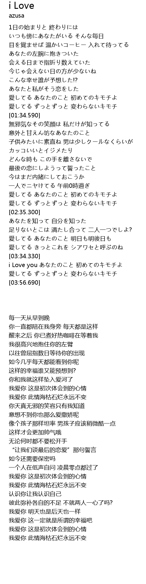 | [03:36.440] | i Love you あなたのこと 初めてのキモチよ |