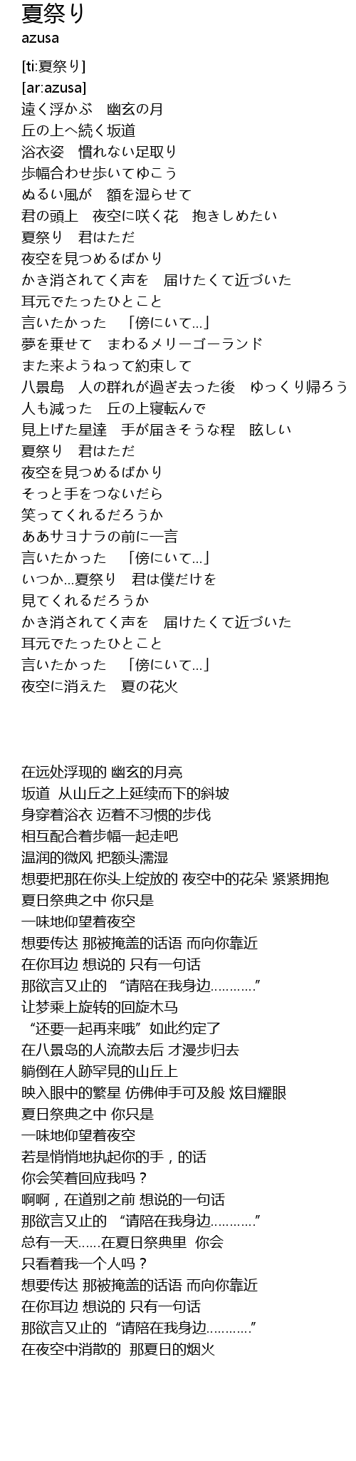 | [03:50.638] | いつか...夏祭り 君は僕だけを |
