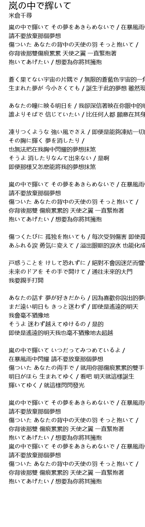 | Song | 岚の中で辉いて |