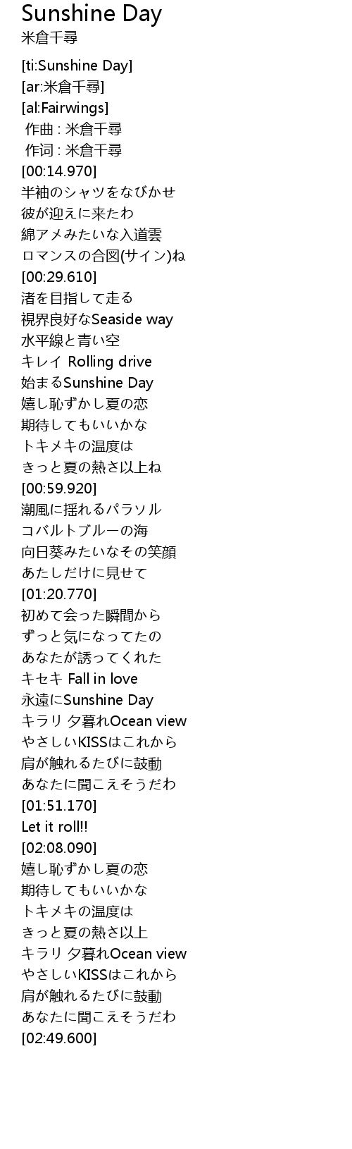 | [02:20.680] | 嬉し恥ずかし夏の恋 |