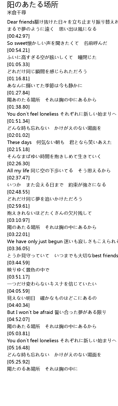 | [04:56.62] | 陽のあたる場所 それは胸の中にあるから |