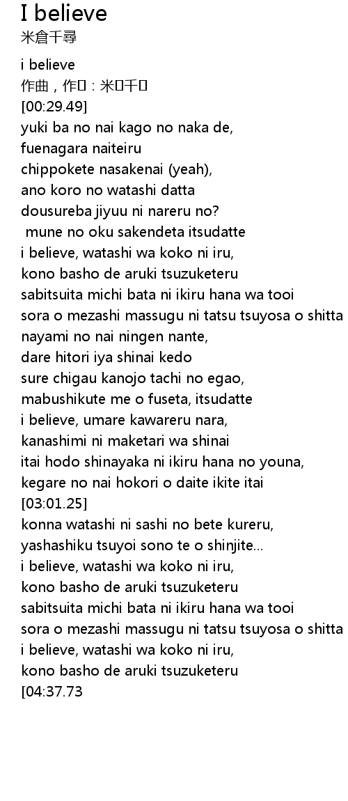 | [00:00.00] | i believe |