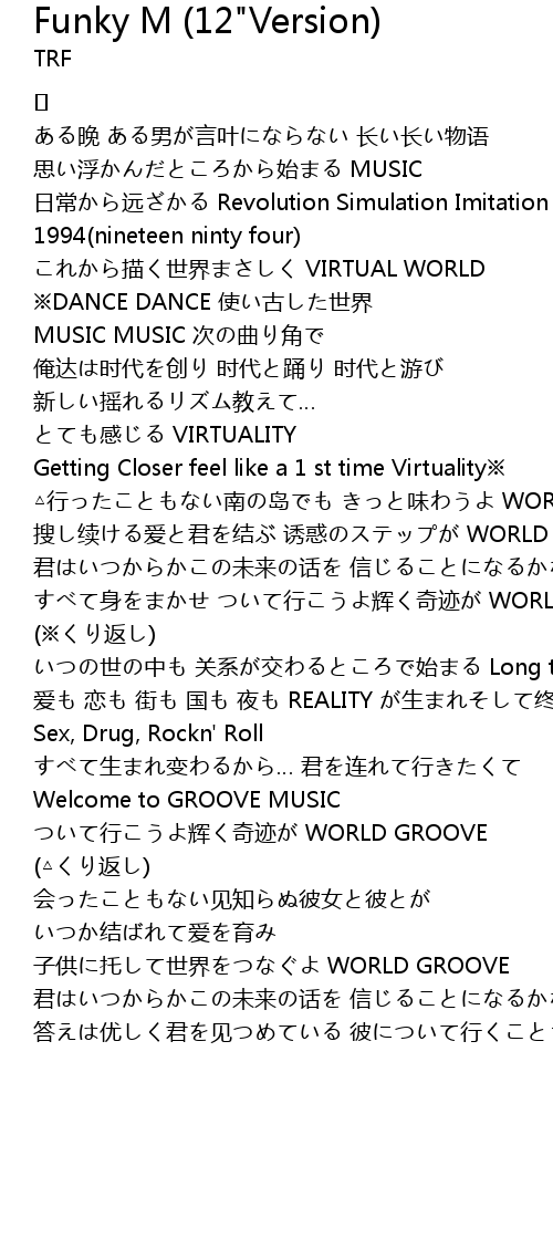 | すべて身をまかせ ついて行こうよ辉く奇迹が WORLD GROOVE | |