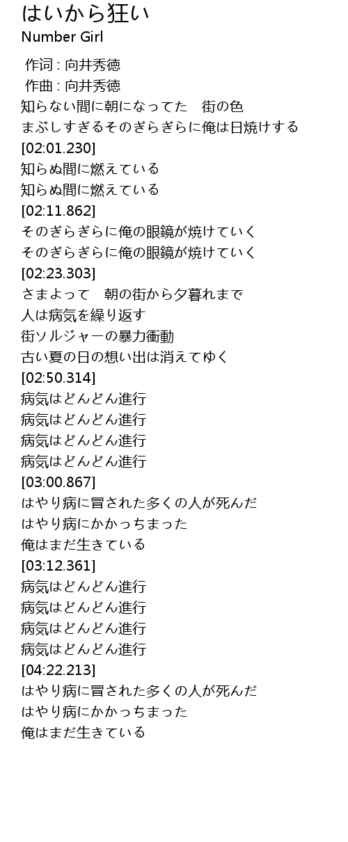 | [00:00.000] | 作词 : 向井秀徳 |