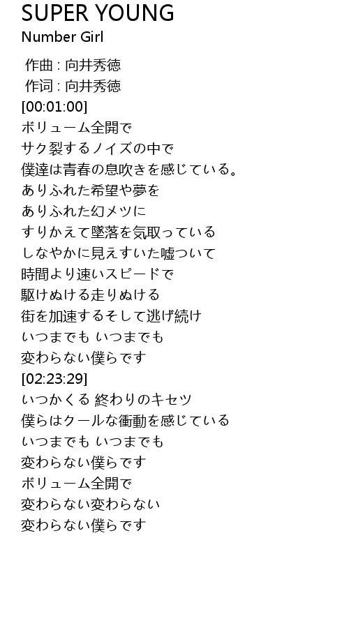 | [00:00.333] | 作词 : 向井秀徳 |