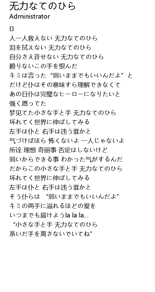 | Song | 无力なてのひら |