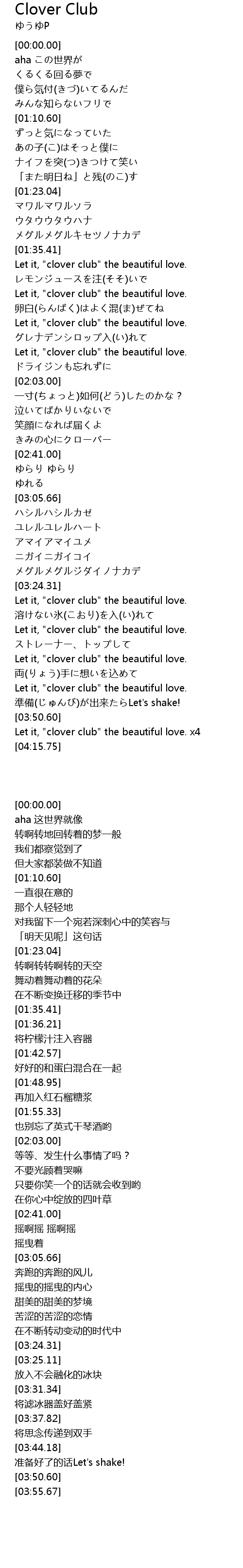 | [03:55.67] | Let it, " clover club" the beautiful love. x4 |