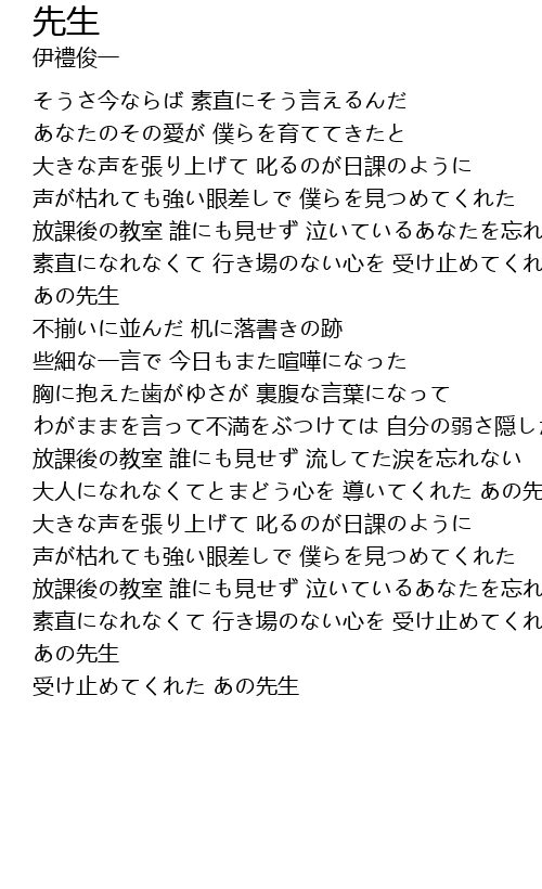 | 素直になれなくて 行き場のない心を 受け止めてくれた あの先生 | |