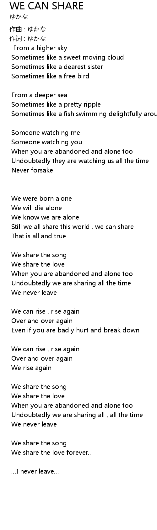 | Song | WE CAN SHARE |