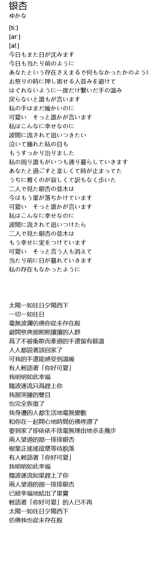 | [02:50.55] | 二人で見た銀杏の並木は |