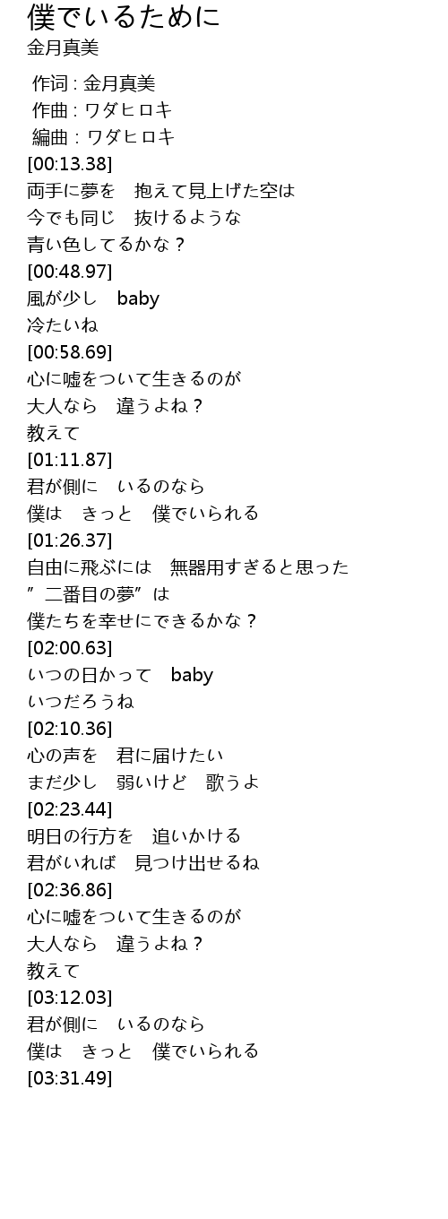 | [00:00.000] | 作词 : 金月真美 |