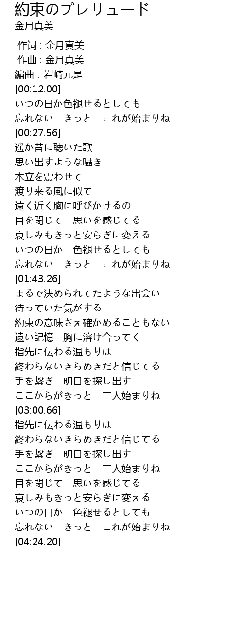 | [03:49.25] | ここからがきっと 二人始まりね |