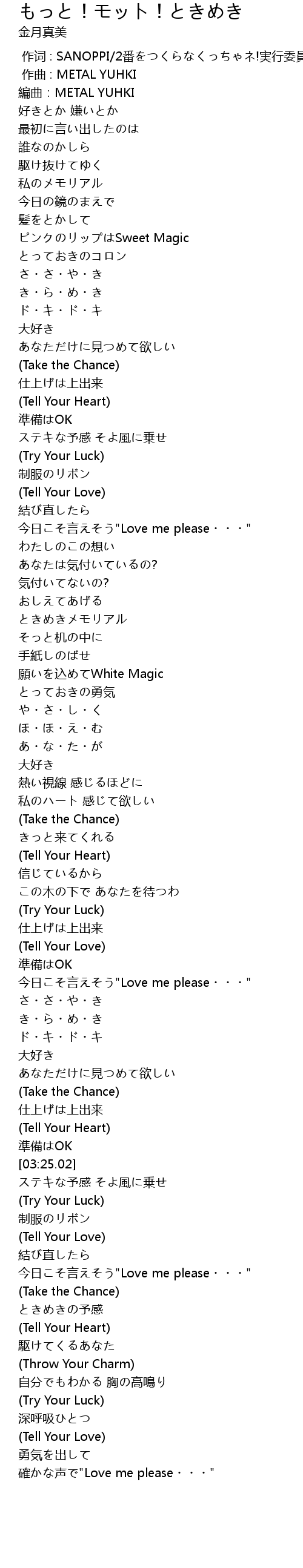 | [03:37.37] | 今日こそ言えそう"Love me please・・・" |
