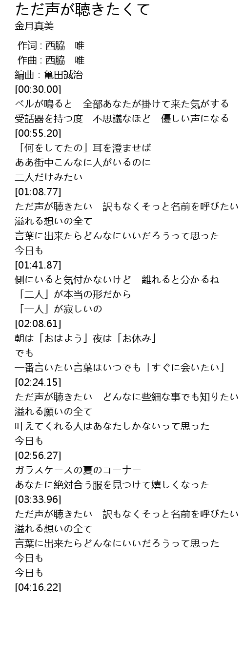 | [00:44.61] | 受話器を持つ度 不思議なほど 優しい声になる |