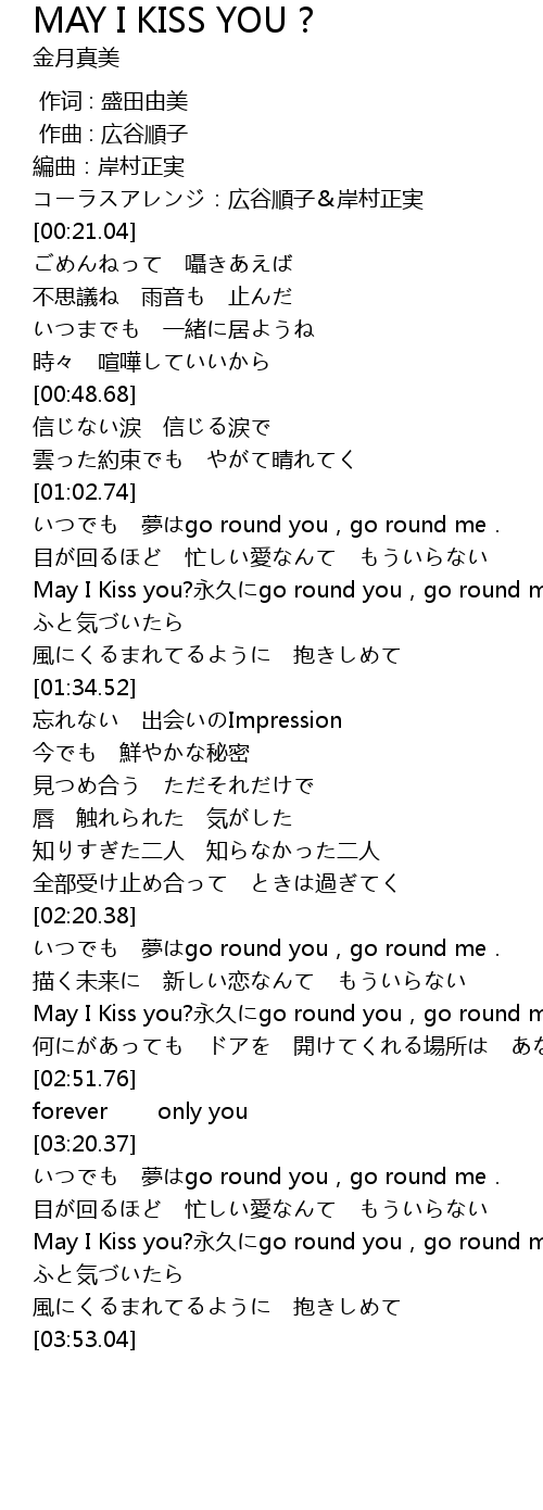 | [02:35.09] | May I Kiss you?永久にgo round you,go round me. |