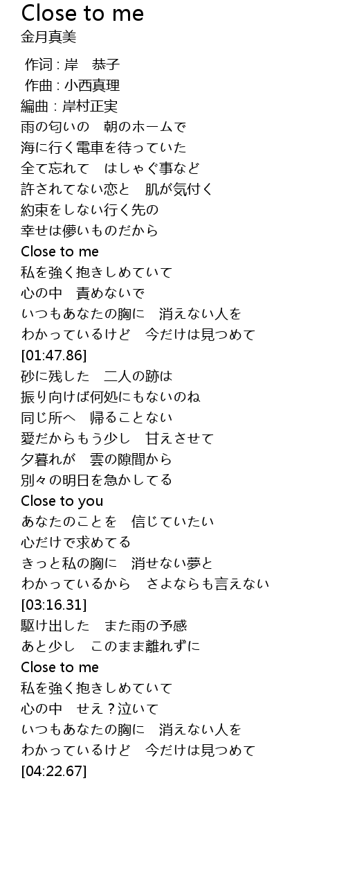 | [04:02.08] | いつもあなたの胸に 消えない人を |