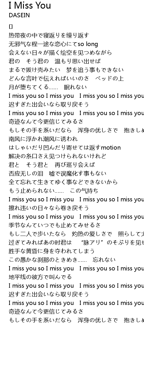 | I miss you so I miss you I miss you so I miss you きっと! | |