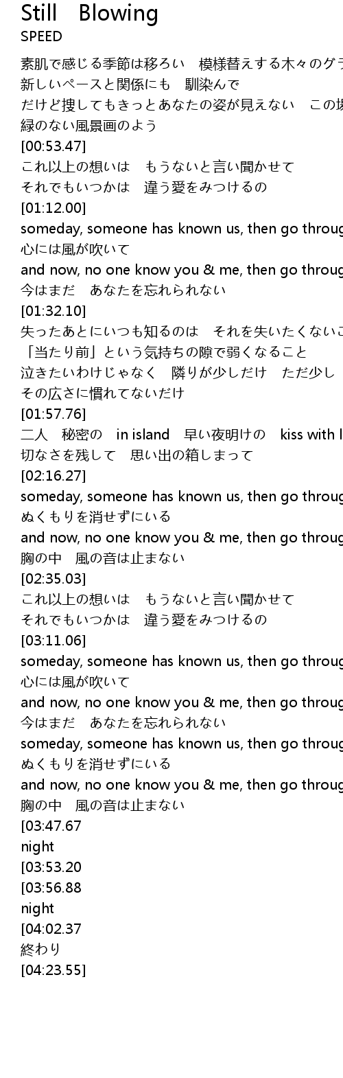| [00:40.56] | 新しいペースと関係にも 馴染んで |