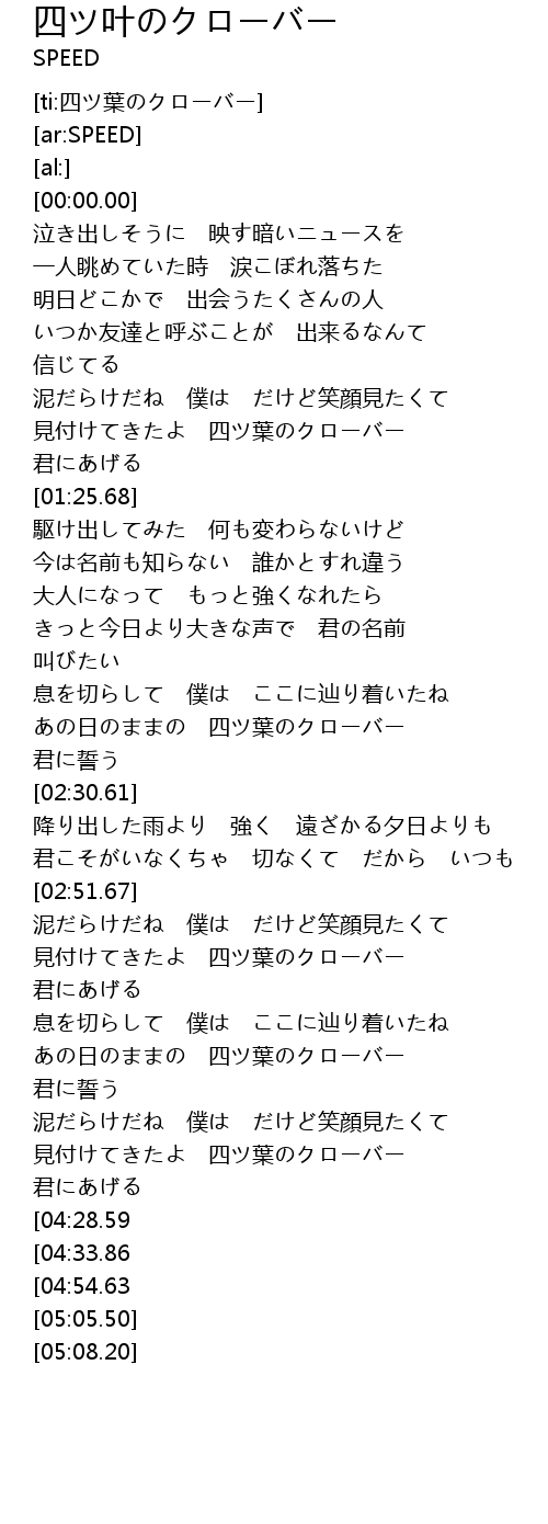 | [03:22.35] | あの日のままの 四ツ葉のクローバー |